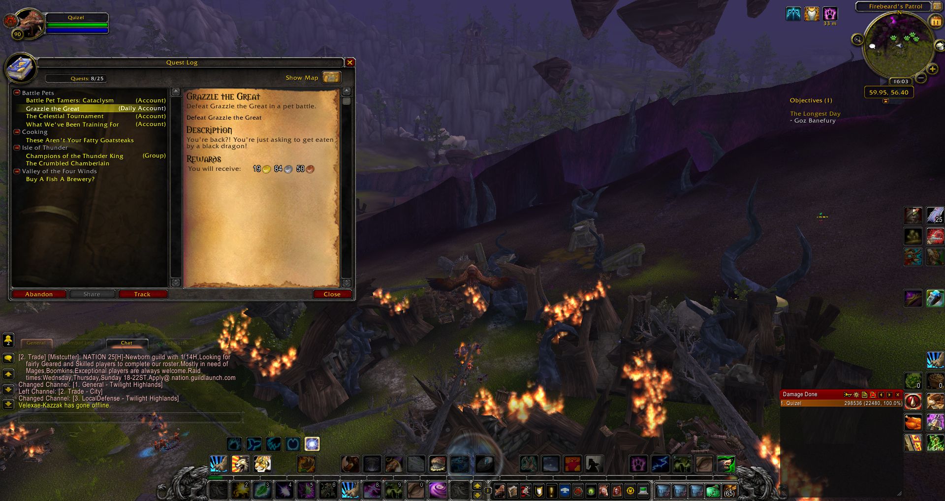 Grazzle the Great is a World of Warcraft screenshot, has been viewed 1681 times and has been added on 2015-01-26. The screenshot has the resolution 1920x1018 and has a file size of 0.3 MB. In total there are 6661 wow screenshot hosted on Gamingcfg. Visit upload gaming settings to store and share your World of Warcraft gaming settings with the community.