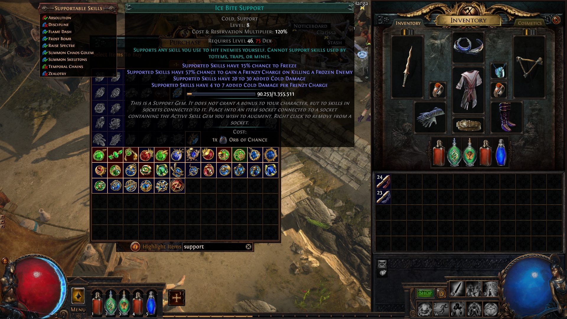 Ice Bite Support is a Path of Exile screenshot, has been viewed 486 times and has been added on 2022-09-08. The screenshot has the resolution 1920x1080 and has a file size of 1.71 MB. In total there are 478 poe screenshot hosted on Gamingcfg. Visit upload gaming settings to store and share your Path of Exile gaming settings with the community.