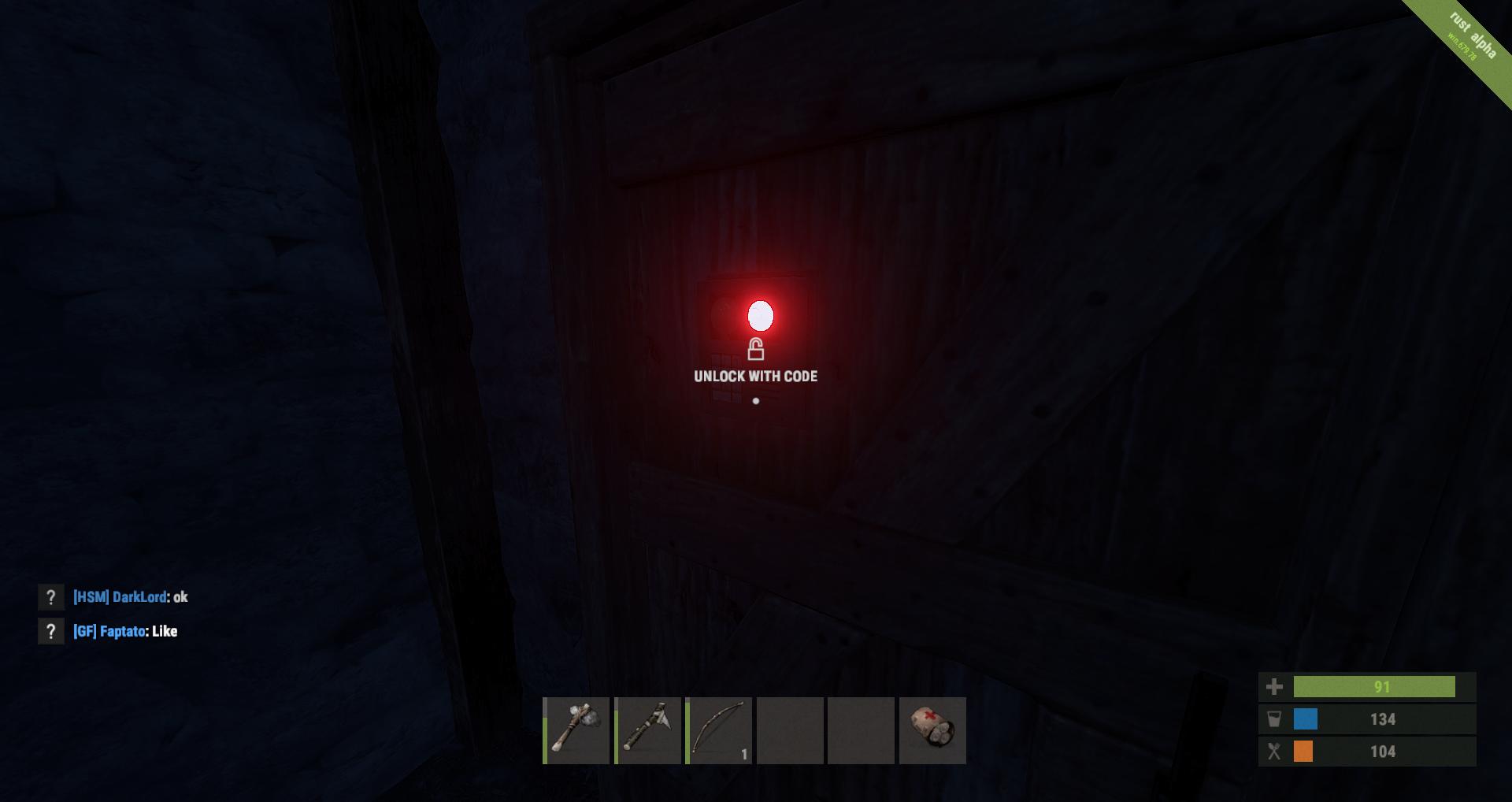 Unlock with Code is a Rust screenshot, has been viewed 1653 times and has been added on 2015-10-27. The screenshot has the resolution 1920x1018 and has a file size of 0.05 MB. In total there are 74 rust screenshot hosted on Gamingcfg. Visit upload gaming settings to store and share your Rust gaming settings with the community.